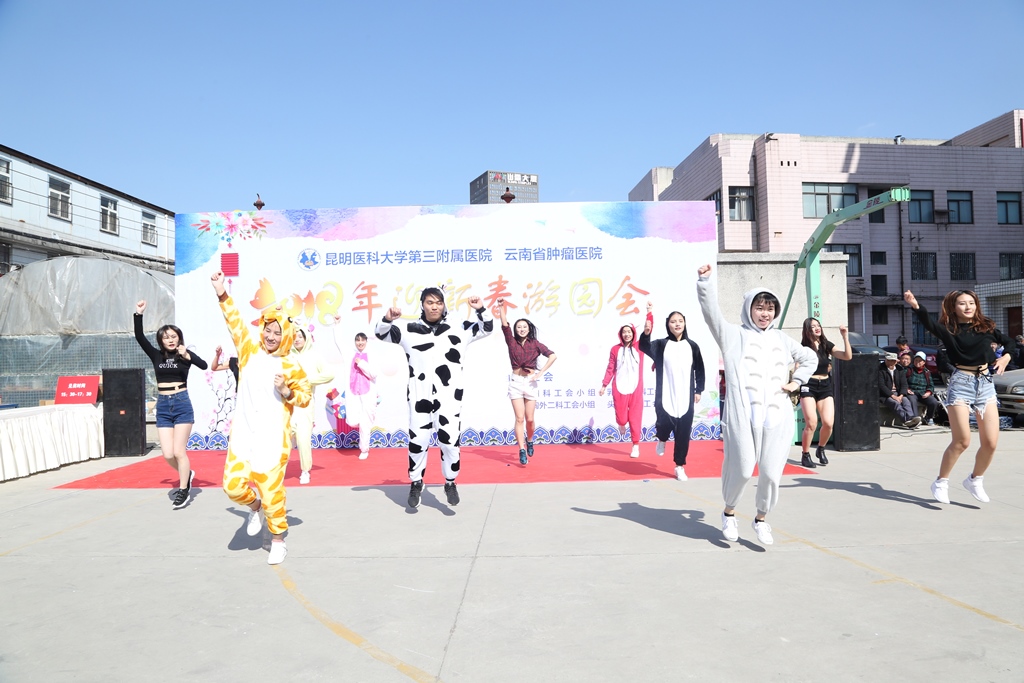 1月19日下午,云南省肿瘤医院昆明医科大学第三附属医院篮球场内一片欢声笑语,由工会主办,妇科工会小组、乳腺一科工会小组、胸外二科工会小组、头颈外科工会小组承办的2018年迎新春游园会活动正如火如荼的进行。医院在院的党政领导及部分职能部门负责人出席游园会,与广大职工同乐。