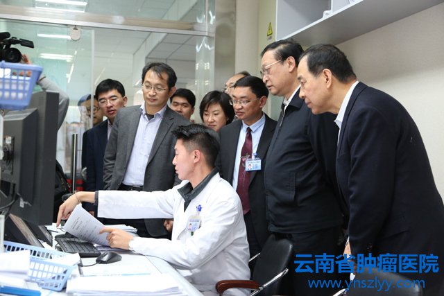 随后,王国强副主任等领导前往我院放疗机房、PET/CT中心、核医学科、放射科等科室,实地察看我院TOMO、Versa HD、PET/CT、3.0T磁共振等大型医疗设备的功用及运行情况,详细了解了患者的诊疗情况以及在放射治疗中的放射剂量的核算和使用、放射物理师的培养途径、工作待遇等情况。