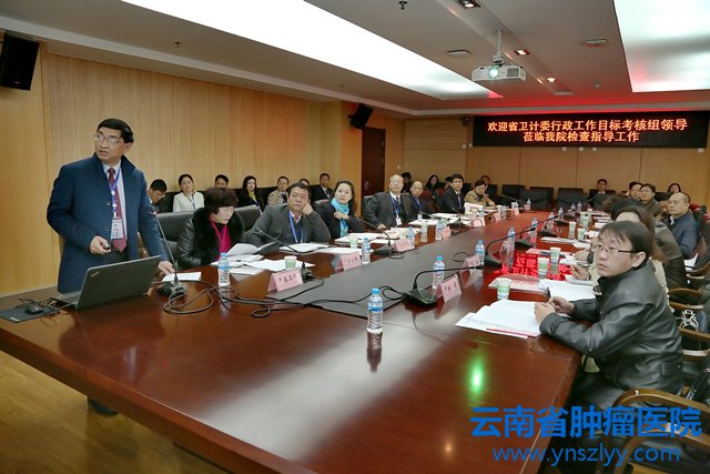 1月23日上午,省卫计委主任李玛琳、副巡视员吴宏率省卫计委2016年度综合责任目标第一考核组一行8人到云南省肿瘤医院开展实地考核工作。昆明医科大学副校长兼医院党委书记吴红明主持检查汇报会,医院院长黄云超作考核汇报,医院党政领导及行政职能部门负责同志参加了汇报会。