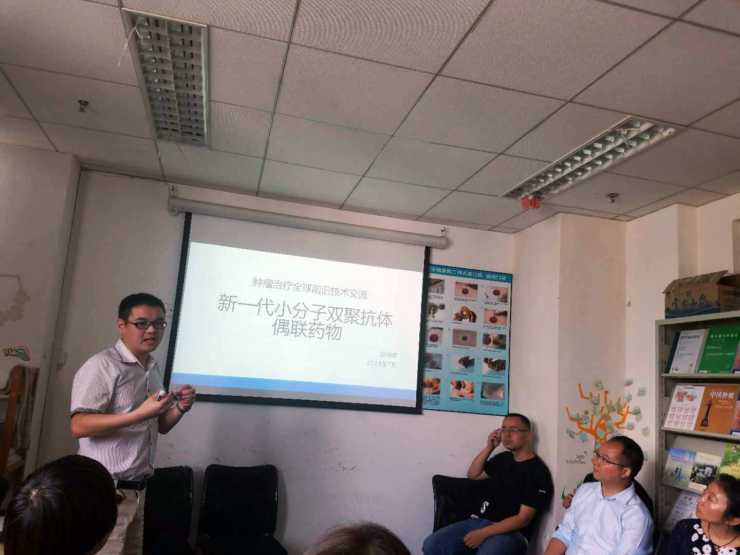 在结直肠外科,相关科室人员与两位教授进行深度交流,针对常见遗传性肿瘤基因检测的相关问题开展探讨研究,并进行合作初步洽谈。澳大利亚哈德逊医学研究所舒润哲教授还为我院医护人员作“新一代小分子双聚抗体偶联药物”讲座,分享了肿瘤治疗的最新前沿动态。
