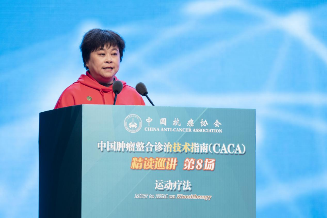 中国中医科学院西苑医院许云教授以中医运动疗法发展历程为切入点,指出在我国引进运动是良医理念,并提出体医整合国策后,中医运动康复快速与现代方式进行融合,中医运动“强度低、易操作、院内院外居家皆适用”的特点使其具有广泛的人群基础。期间许教授对八段锦、太极拳、易筋经、五禽戏、六字诀几种常见的中医运动方式结合患者不同阶段的康复需求进行了详细介绍,提出CACA指南推荐以“辩期治疗”为主,表明中医运动康复应贯穿肿瘤患者全生命周期。