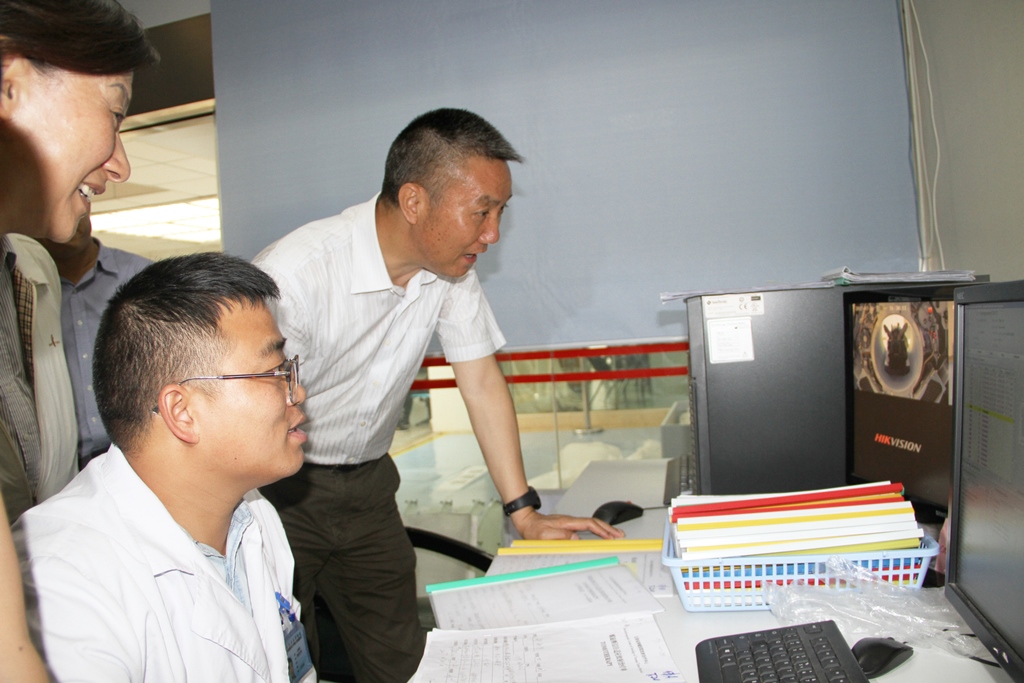 调研会后,赵镇康副厅长一行在医院领导、部分临床科室主任、相关职能部门负责人的陪同下,到医院收费处、药剂科、放射治疗科、PET/CT中心、头颈外科、姑息医学科等实地了解了医院取消药品加成同步调整医疗服务价格后的运行情况,认真听取了医务人员对医改的体会。在姑息医学科,赵镇康副厅长一行深入病房,与患者亲切交谈,详细询问了患者的治疗及费用情况,听取了患者对医改的心声。当听到患者对本次医改政策十分支持,对医院诊疗服务表示满意时,赵镇康副厅长再次向患者宣讲了国家有关政策,叮嘱患者安心治疗并祝福患者早日康复。