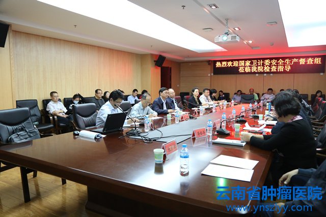 10月25日下午,国家卫计委组织安全生产督查组专家新疆生产建设兵团卫生局副局长何红、北京大学第三医院保卫处巨睦、新疆生产建设兵团卫生局医政处调研员江华、新疆生产建设兵团第四师医院党委书记蒋登华、新疆生产建设兵团第一师医院副院长王志强一行,在云南省卫计委副巡视员吴宏、云南省卫计委办公室调研员黄从华、云南省卫计委办公室信访科科长张京津的陪同下,到我院开展安全生产大检查“回头看”督查。